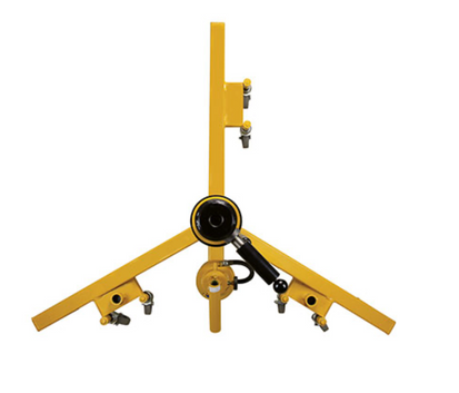 Los nuevos gatos para aviones de la serie Meyer Hydraulics® Tri-Task cuentan con cerraduras de seguridad de pasador positivo, ruedas con resorte y un dispositivo especial de bloqueo Meyer para eliminar el movimiento cuando la aeronave está elevada. Pintado de alta visibilidad de un amarillo.